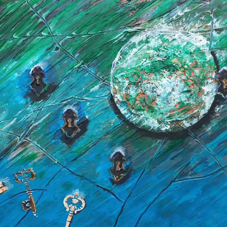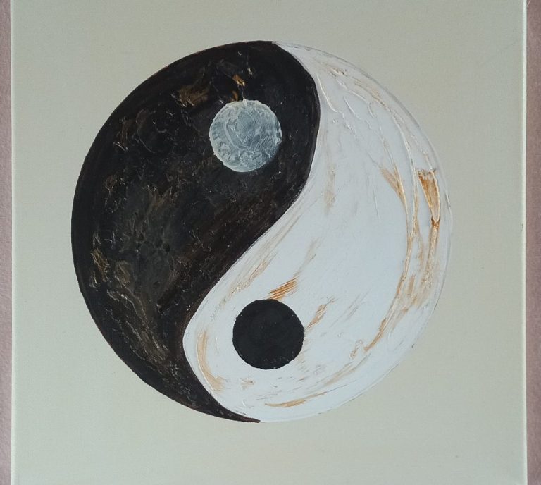 Ideengeber war die Scherbe in Herzform. Inmitten eines zerbrochenen Spiegels tauchte Sie in meiner Wahrnehmung auf. Sie zeigte mir ganz deutlich, dass in jedem Unglück auch immer etwas Gutes steckt. Zerstörung und Neuaufbau gehören zusammen wie Gut und Böse, wie Schwarz und Weiß und Yin und Yang.