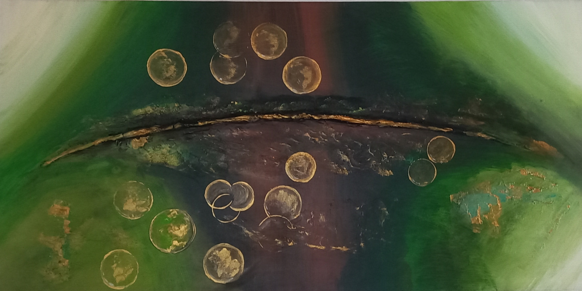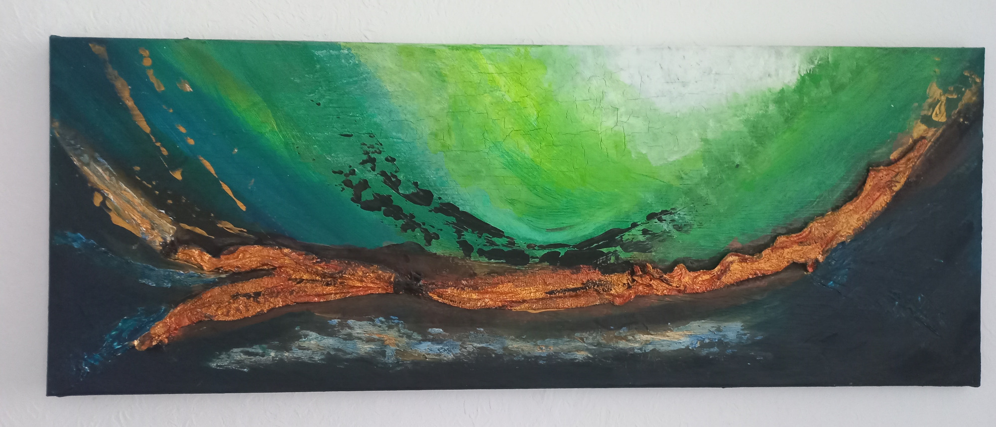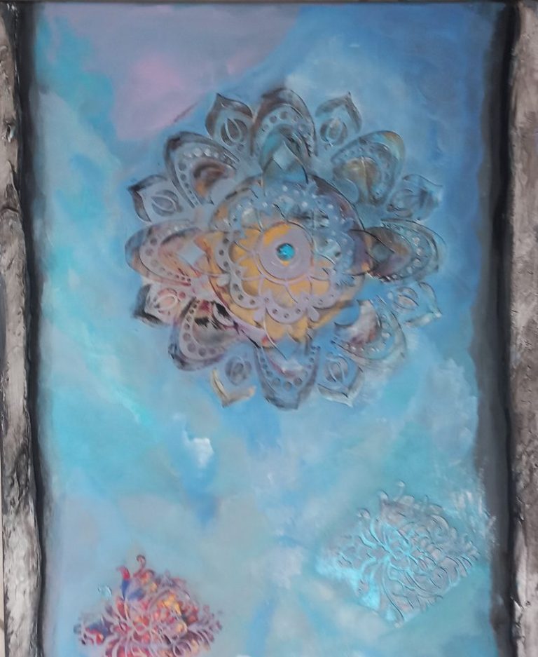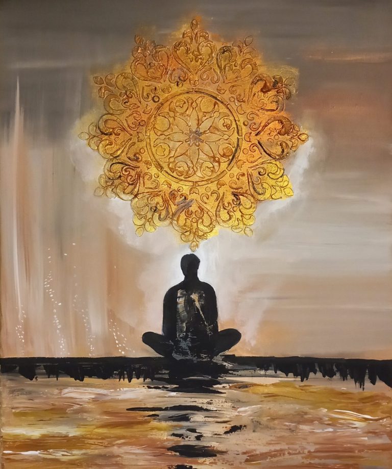Dunkle Ecken wirken durch die Bilder heller. Die Goldelemente veredeln die Kunst und sind ebenso, wie die Spiegelscherben ein absoluter Hingucker.
