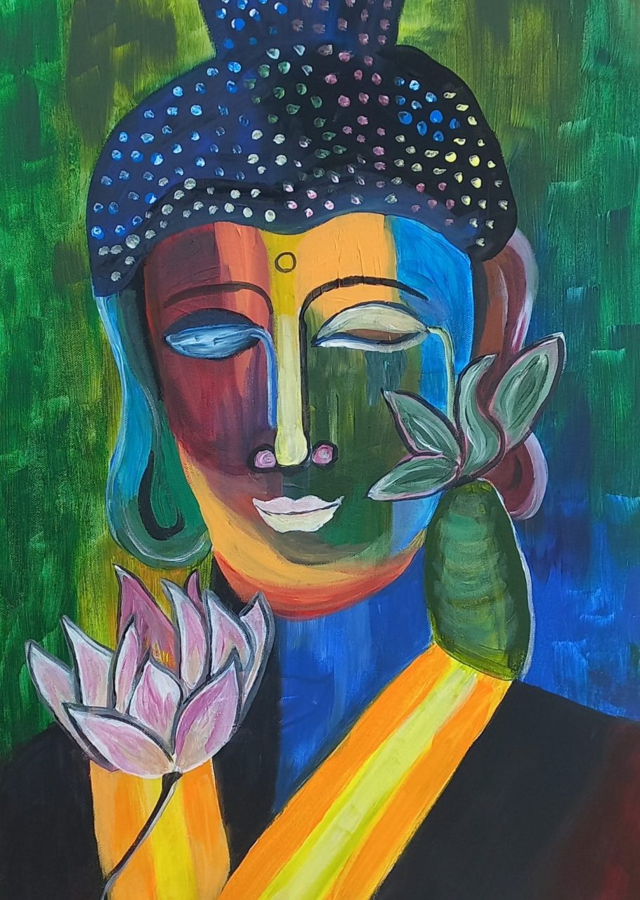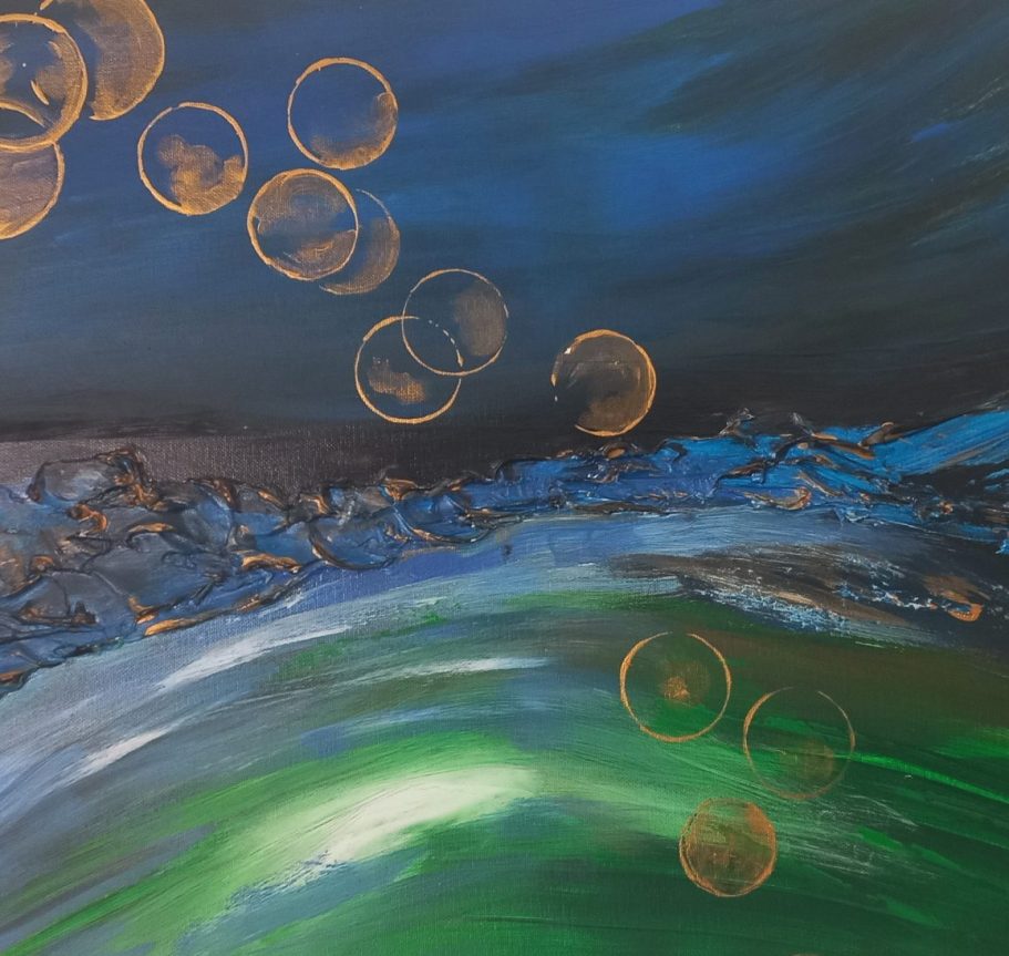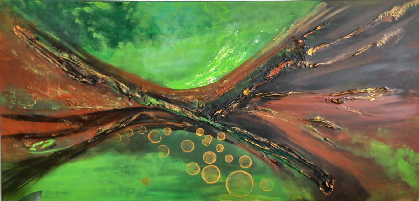 Dunkle Ecken wirken durch die Bilder heller. Die Goldelemente veredeln die Kunst und sind ebenso, wie die Spiegelscherben ein absoluter Hingucker.